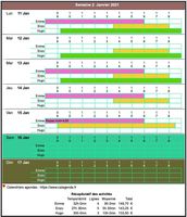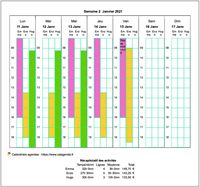 - Display of the detailed schedule in a vertical format weekly calendar.In this calendar, times are displayed horizontally. Use the different tabs located above the calendar (Calendar, Month, Boxes, Info, etc.) to personalize it.
